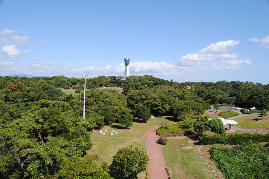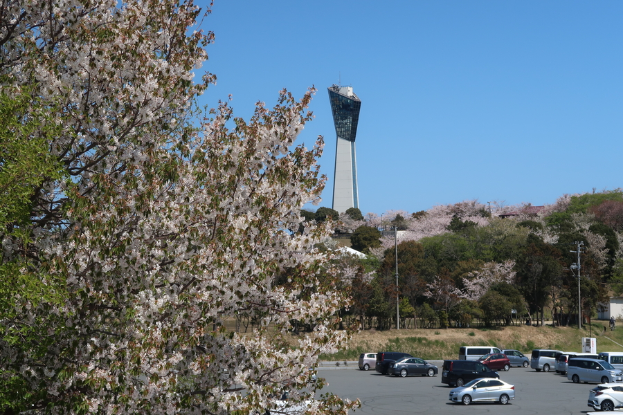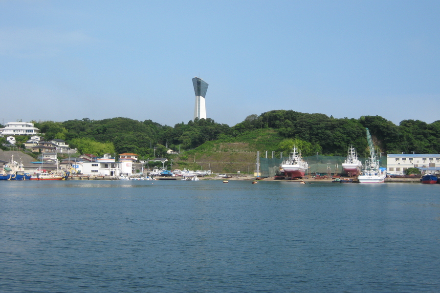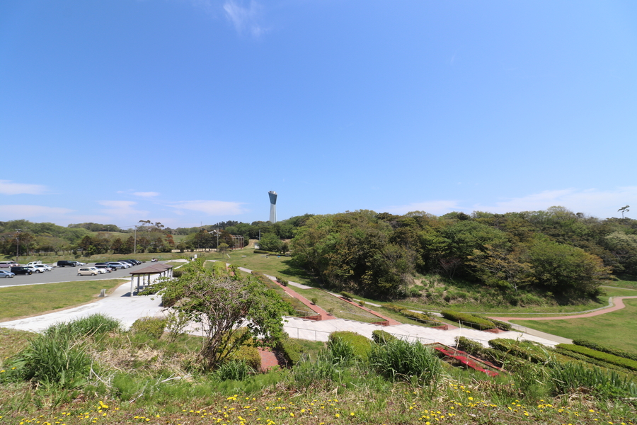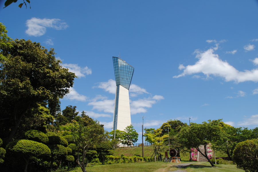 小名浜港の東にある三崎公園内にあるいわきマリンタワー。小名浜港が一望できる。
