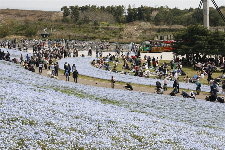 ネモフィラの丘。秋はコキアの丘に衣替え。